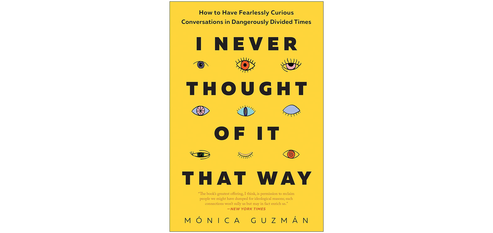 But I wasn’t going to base Kaye’s discussion with her father on trying to trick him into a new opinion. I needed a better way for her to dialogue with him. One of the resources I read is a great book about how to have discussions with those you disagree with. I Never Thought of It That Way by Mónica Guzmán is a how-to about having “fearlessly curious conversations in dangerously divided times.” It’s not really about changing someone’s mind. Instead, it is about crafting a conversation with someone to understand their point of view and to share your own.