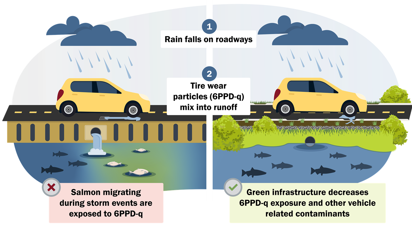According to Dr. Kolodziej, “6PPD-quinone is one of the five or six most toxic compounds to aquatic organisms ever identified. So, its impacts go far beyond just salmon.”